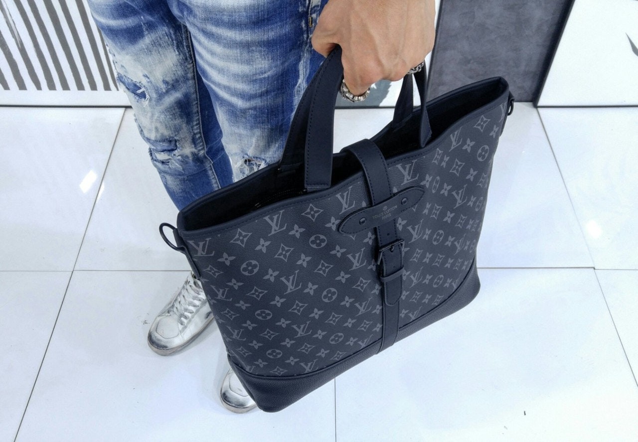 1986년 처음 소개된 루* 비통의 아이코닉한 소뮈르 스타일에서 영감을 받아 전통적인 비즈니스 백을 대체할 수 있는 세련된 디자인으로 선보이는 소뮈르 토트. 모노그램 이클립스 캔버스 소재.버클 스트랩 등 하우스의 트렁크 제조 헤리티지를 연상시키는 블랙 색상의 가죽 디테일이 특징. 소장 가치가 높은 클래식하고 실용적인 아이템.