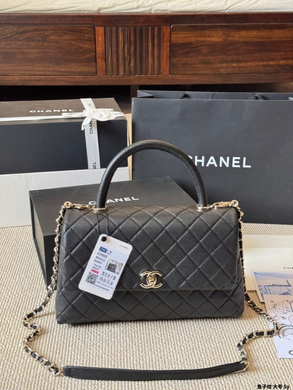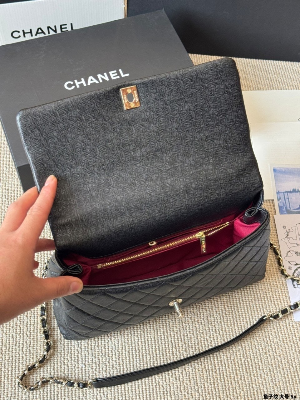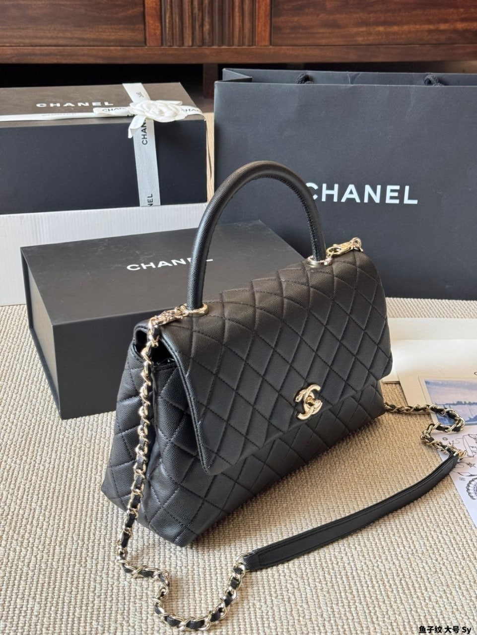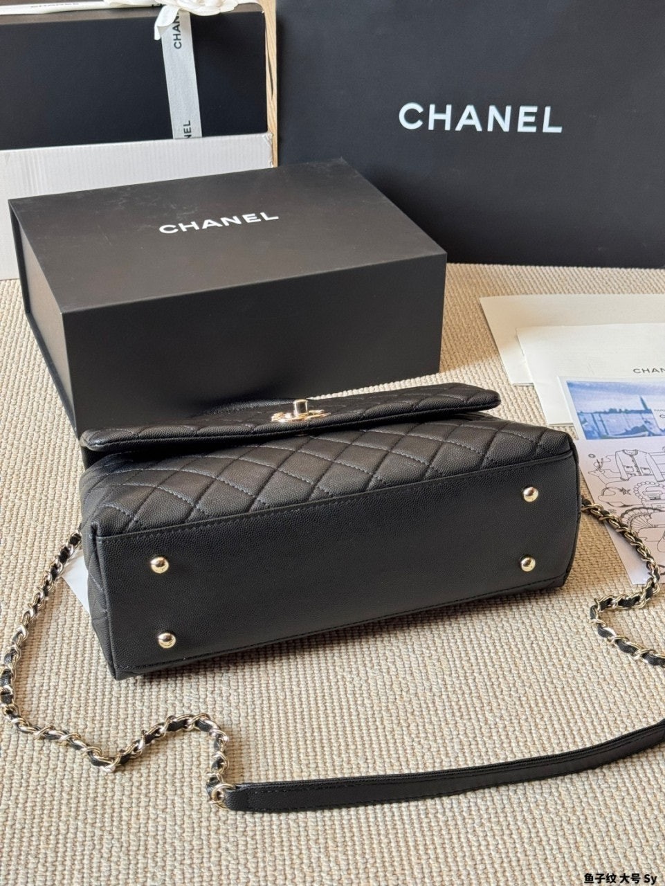 정규품과 유사한 디테일을 구현하며, 작은 캐비어 카프스킨 레더와 24K 빈티지 골드 도금된 하드웨어 메탈을 사용합니다. 탑핸들 및 숄더 스타일로 착용 가능합니다