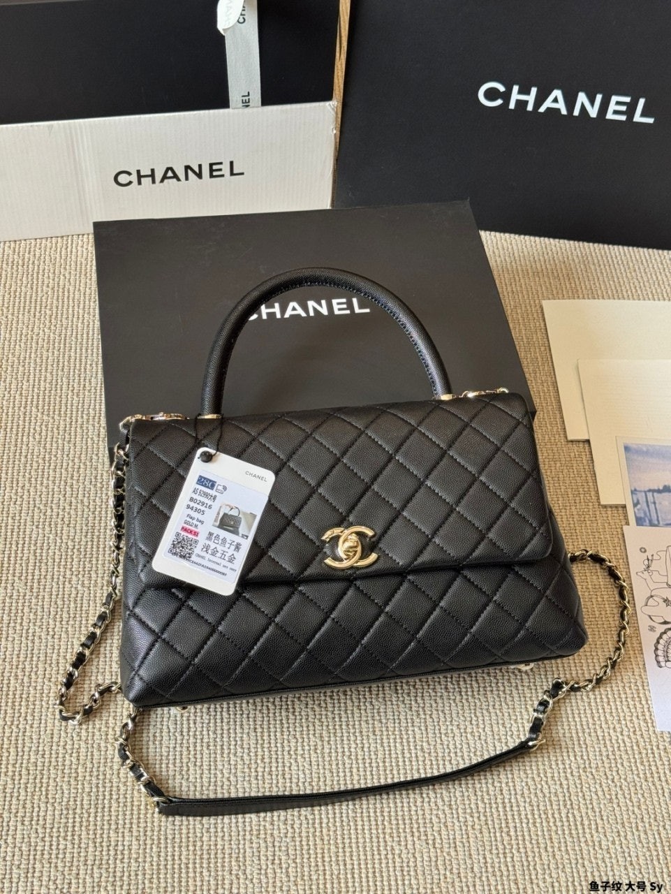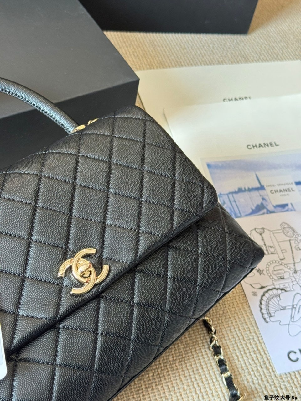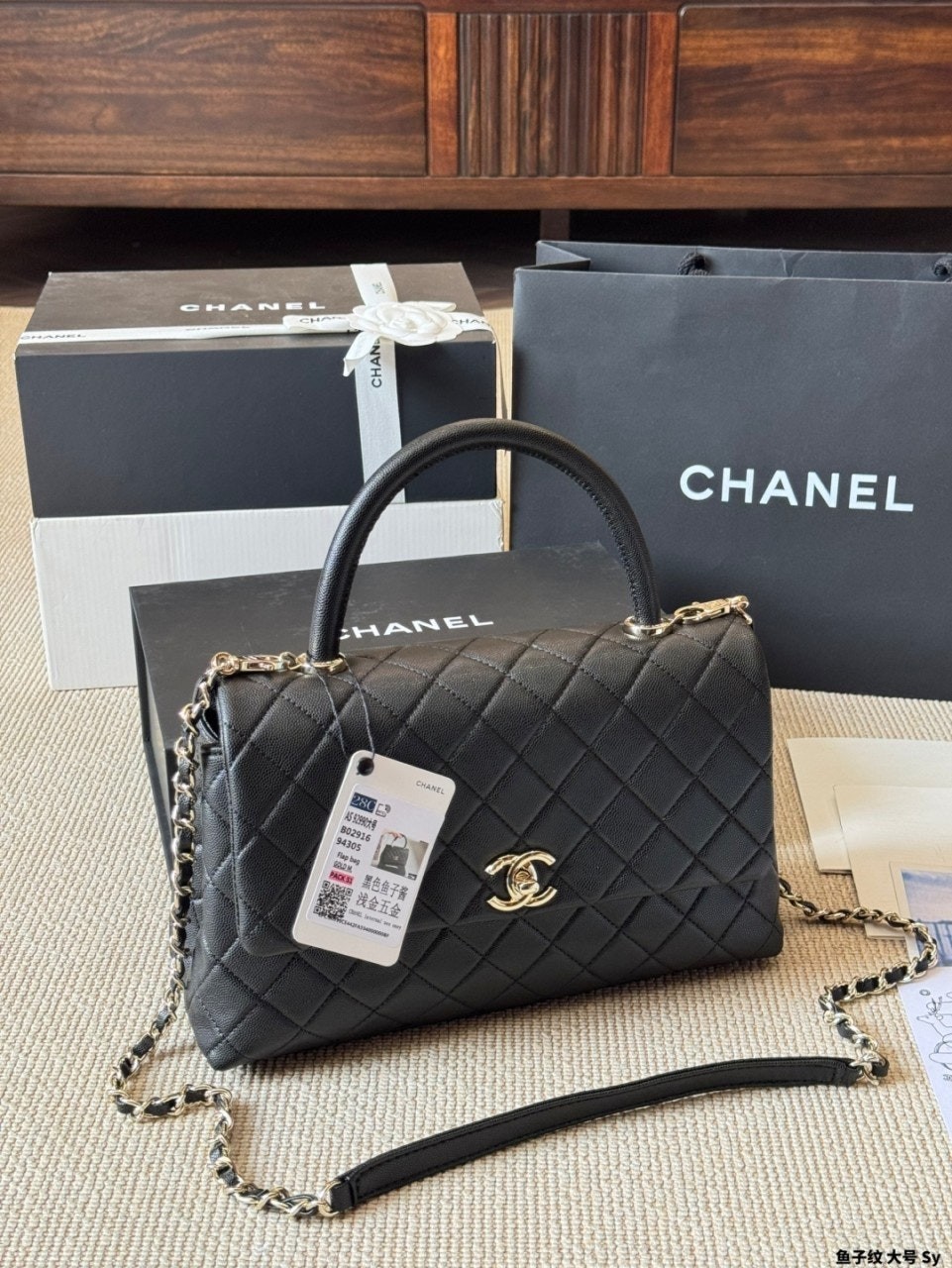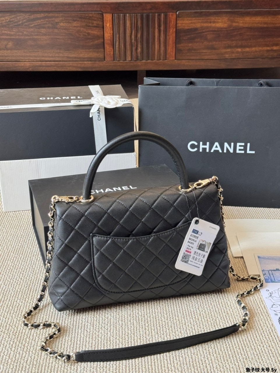 정규품과 유사한 디테일을 구현하며, 작은 캐비어 카프스킨 레더와 24K 빈티지 골드 도금된 하드웨어 메탈을 사용합니다. 탑핸들 및 숄더 스타일로 착용 가능합니다