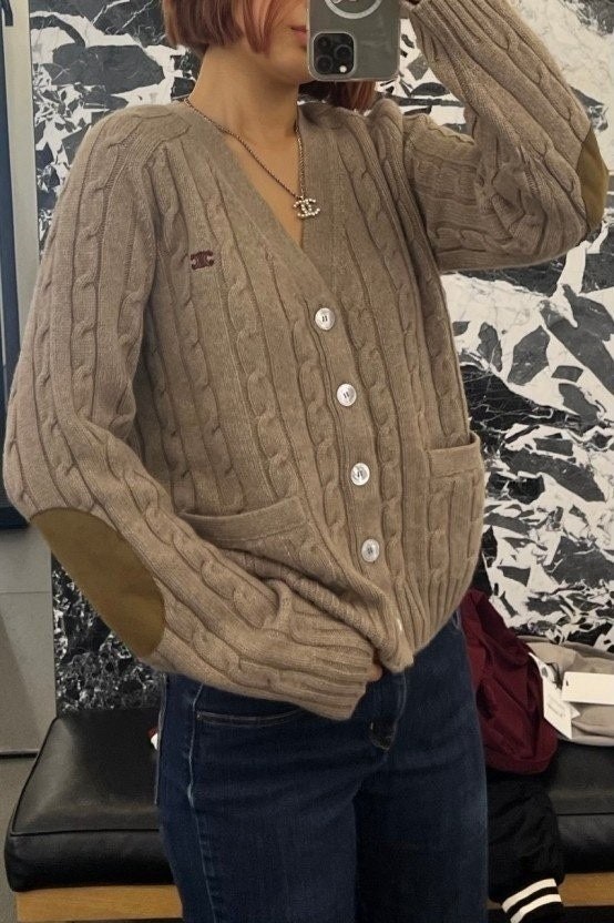 수입 고급 셀** 캐시미어 트리옹프 로고 케이블 가디건 되었습니다.