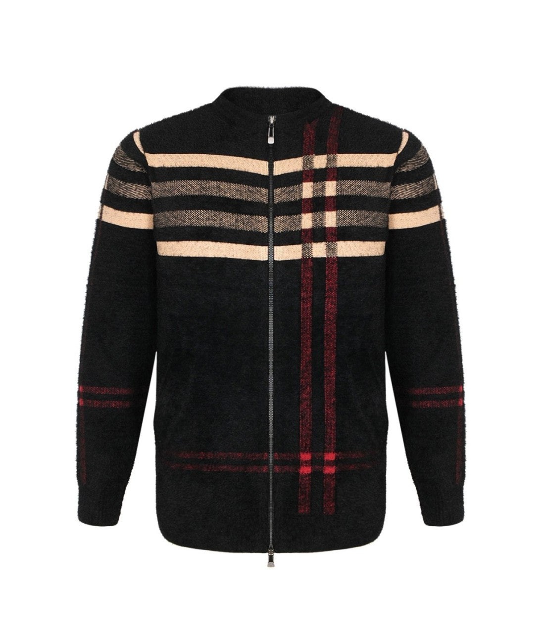 고급스러운 클래식한 체크 패턴이 더해진 니트 집업입니다.