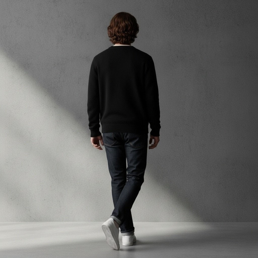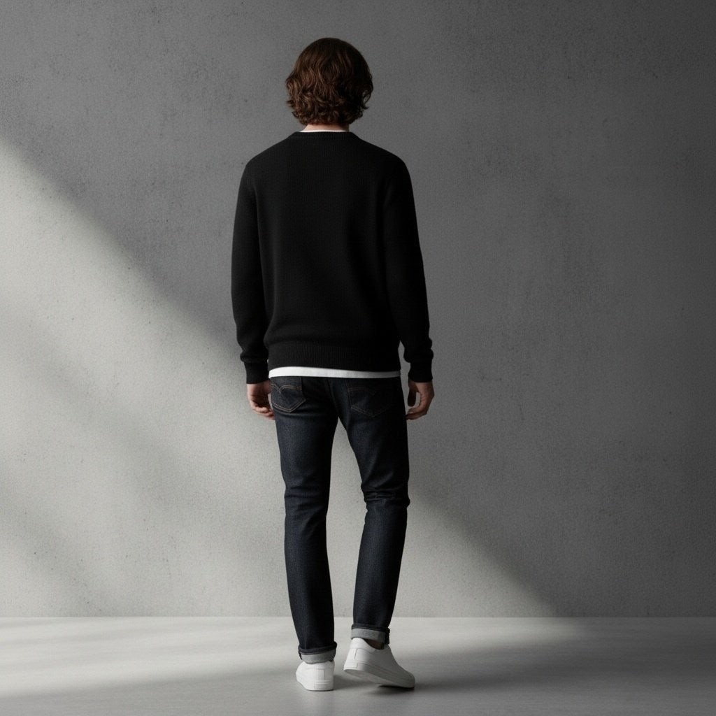 단정한 크루넥 라인과 기본 어깨선이라 셔츠 위에 레이어드하거나