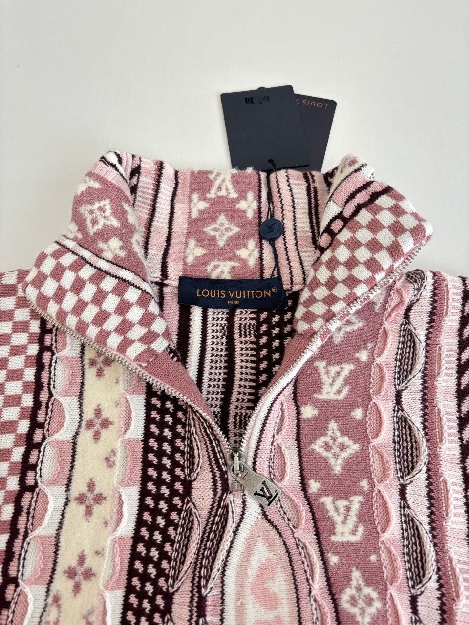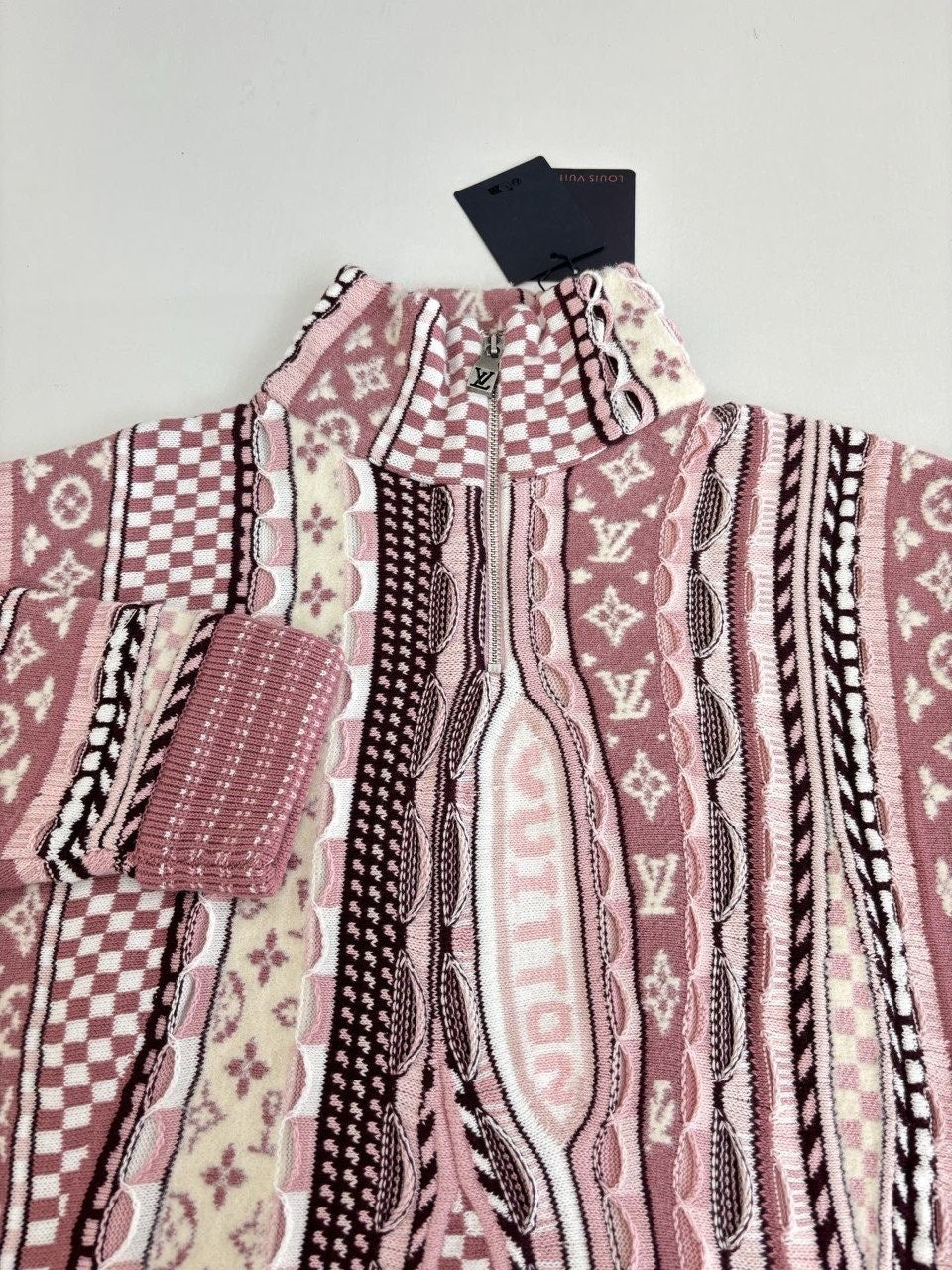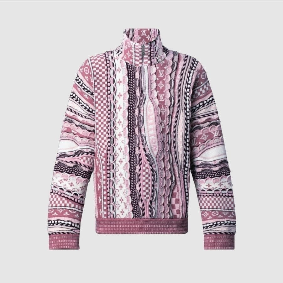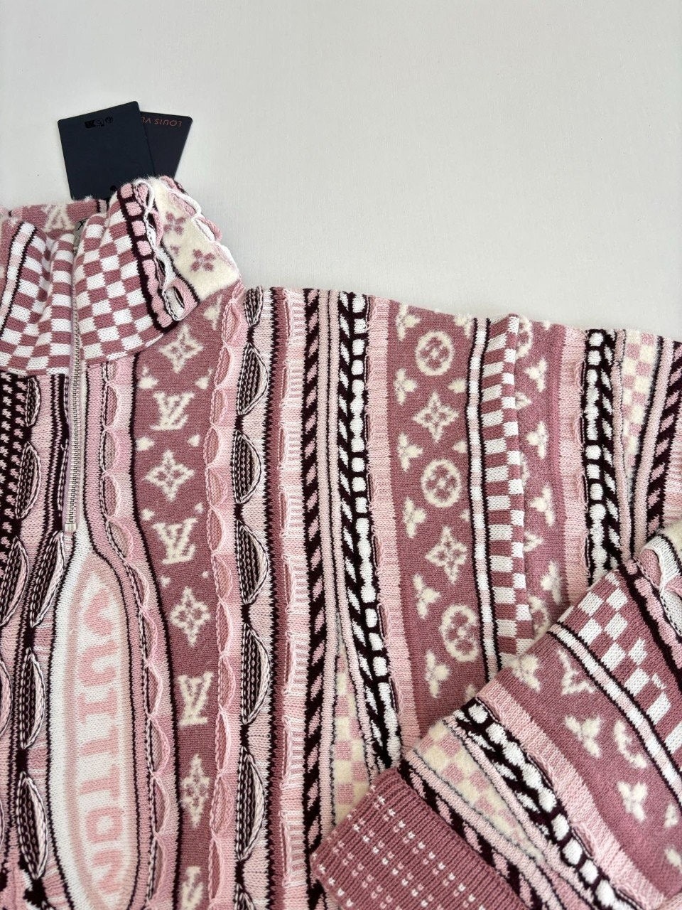 정교한 디테일의 자카드로 2000년대 초반의 스트리트 스타일을 오마주한 페일 핑크 색상의 하프 집 풀오버. 퍼렐 윌리엄스와 니고가 협업하여 가을-겨울 컬렉션에서 선보이는 강렬한 매력의 아이템. 다양한 하우스 시그니처를 결합하고 질감을 풍부하게 살린 니트 소재. 클래식한 아이템과 스타일링하기 좋으며 어떠한 룩에도 세련된 감각을 더해줄 디자인 입니다