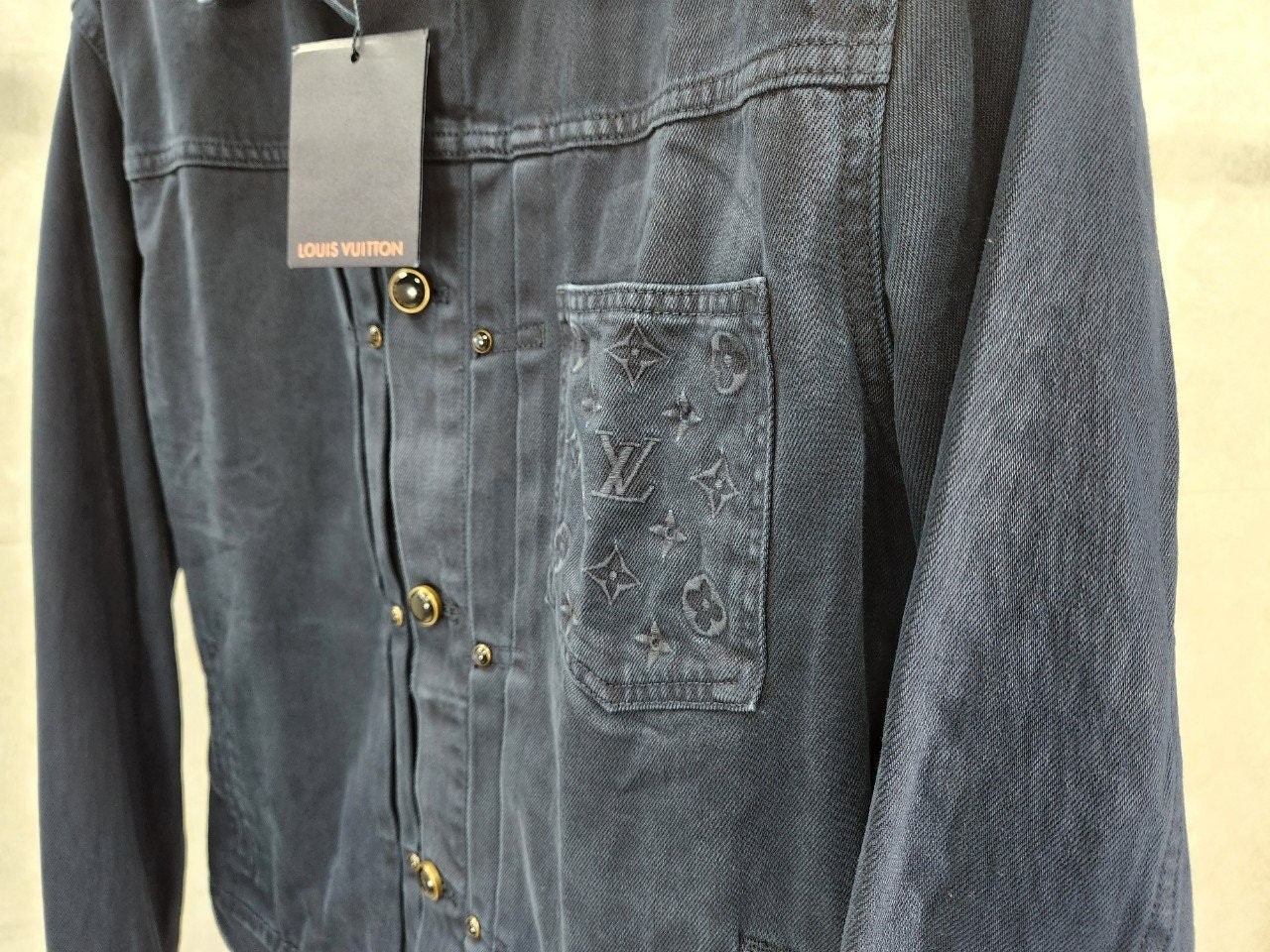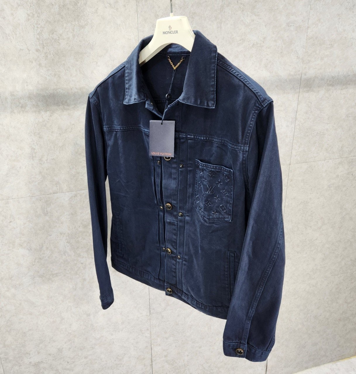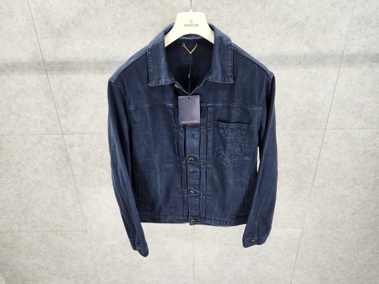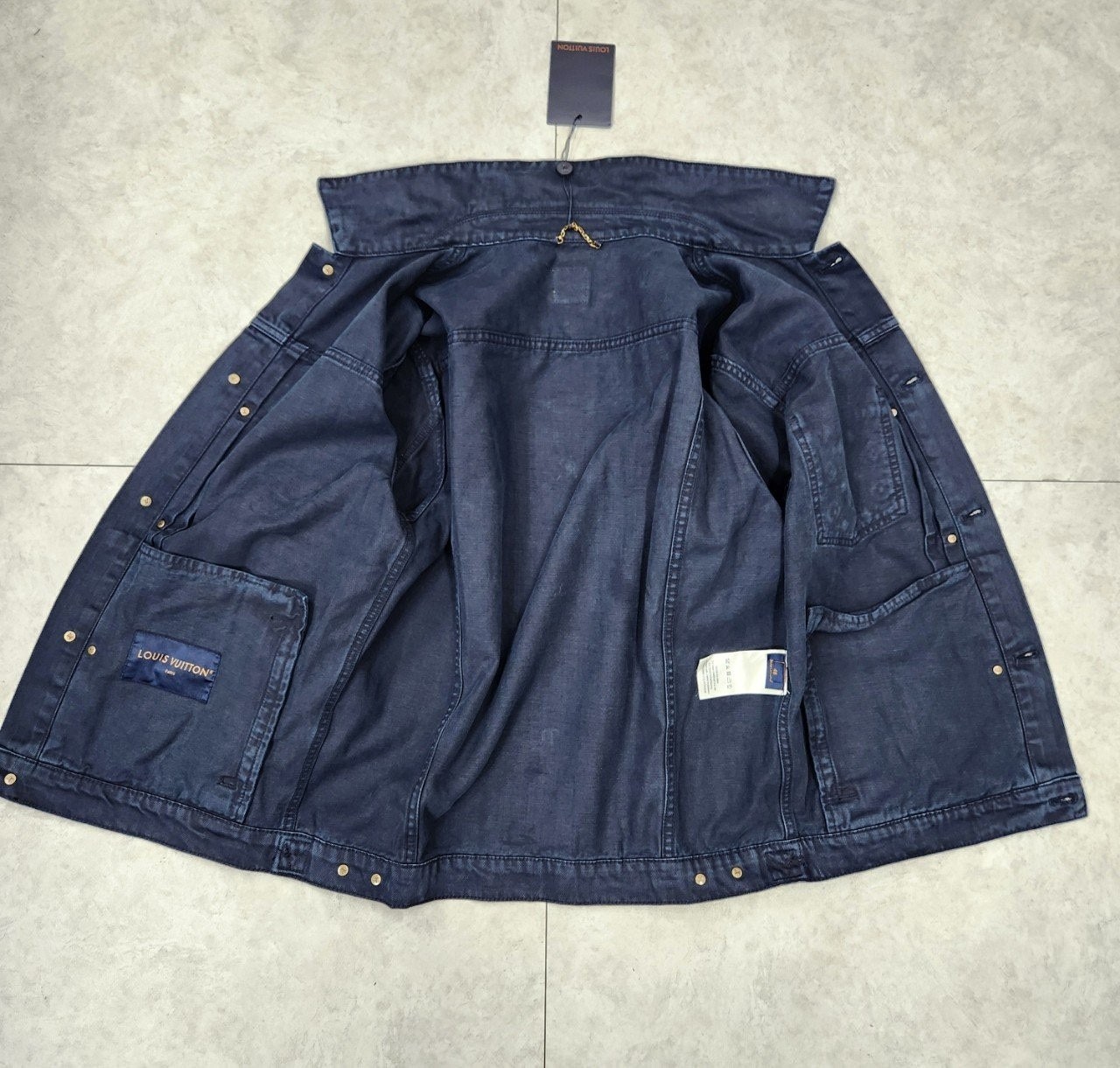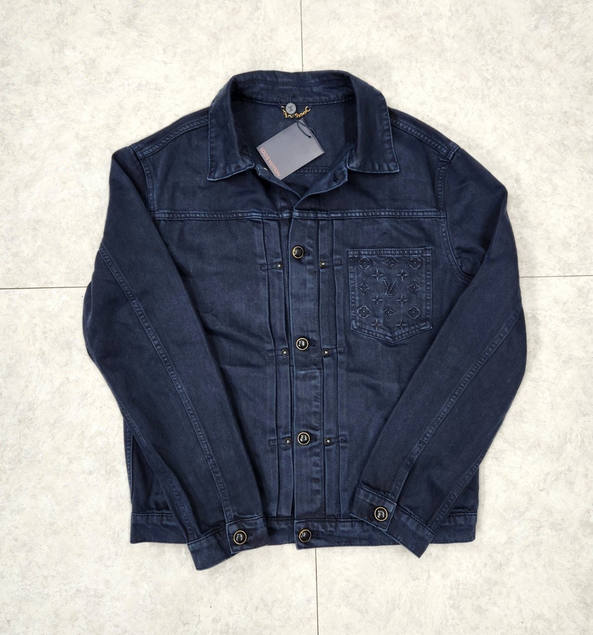 가먼트 다잉 기법으로 다크 네이비 색상을 입혀 빈티지한 워싱 효과를 구현한 타입 II 데님 자켓입니다 클래식한 앞면 플리츠. 모노그램 자수를 장식한 가슴 부분 포켓. 톤 배색을 이루는 진주빛 버튼과 리벳으로 세련된 감각을 더한 디자인 입니다.