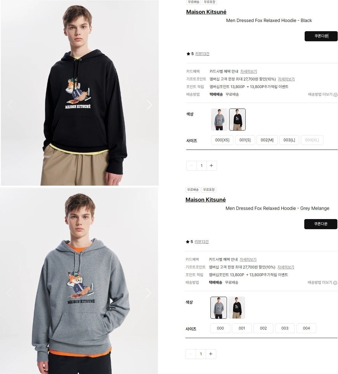 [특가] 메* 키츠네 Dressed Fox후드(2색상) 요약정보 및 구매