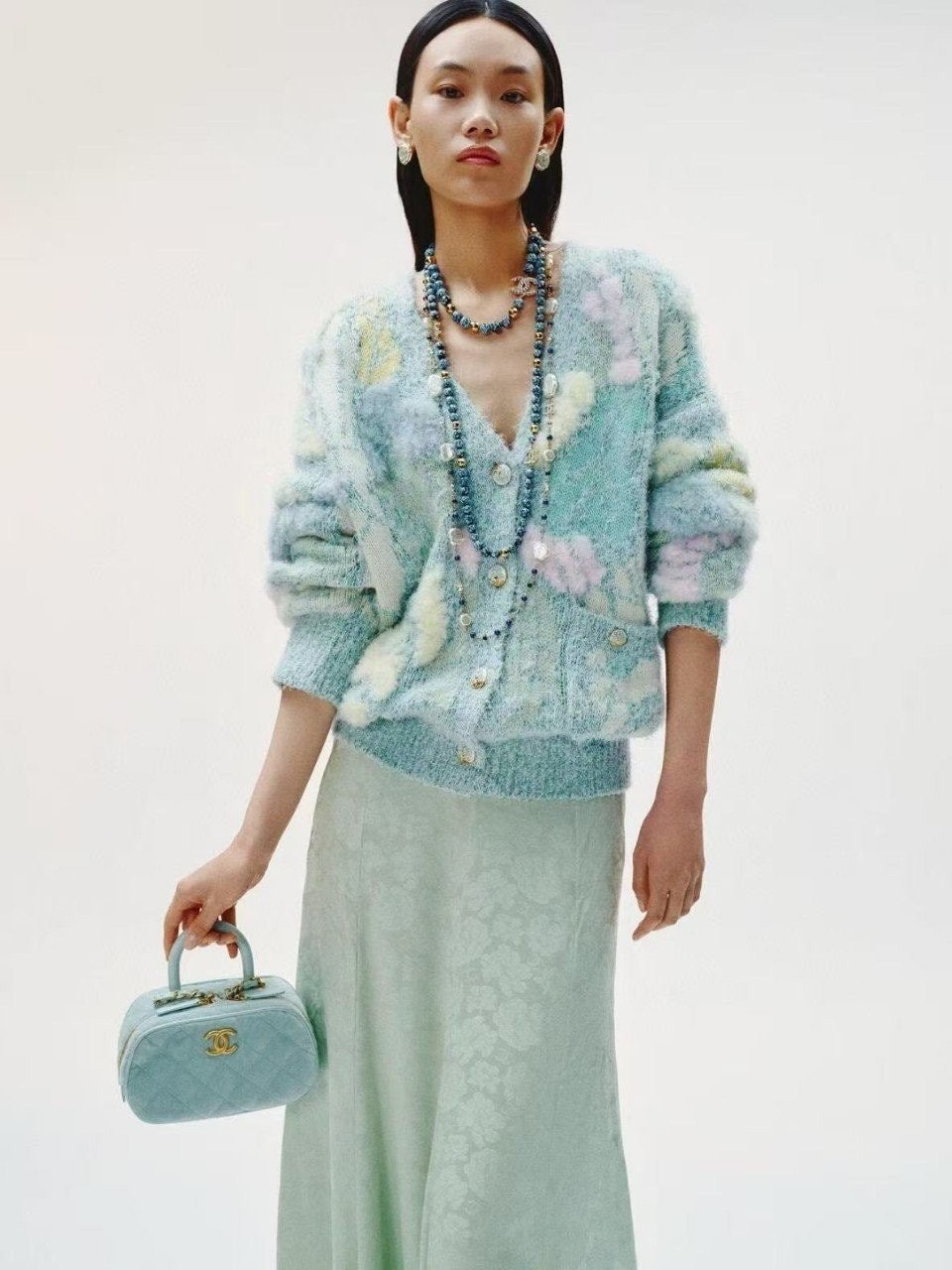 밝은 파스텔 바탕에 옐로우, 그린, 블루, 화이트의 멀티 컬러 프린트가 더해져 산뜻하고 자연스러운 플로럴 패턴을 완성합니다. 캐시미어 울 혼방 소재로 부드럽고 편안한 착용감을 선사하며, 섬세한 터치감을 자랑합니다.