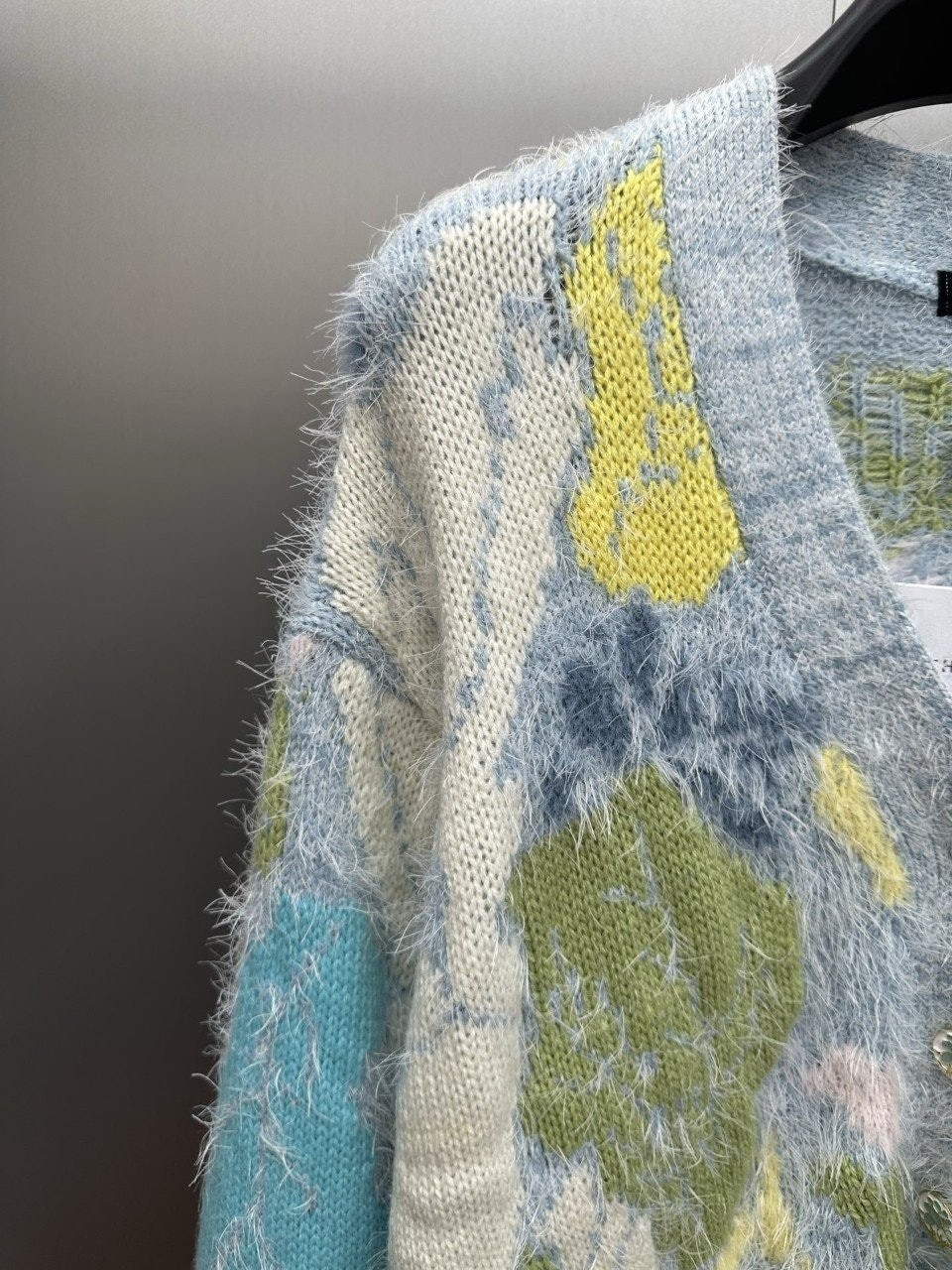 V넥 디자인, 긴소매, 루즈핏으로 제작되었습니다. 산뜻하고 우아한 플로럴 패턴에 플라워 샤* 로고단추가 더해져 고급스러운 분위기를 연출합니다.