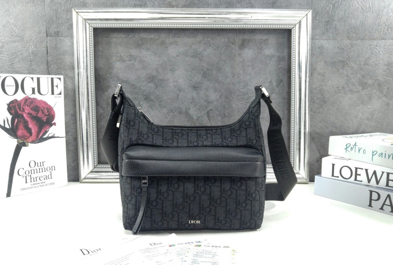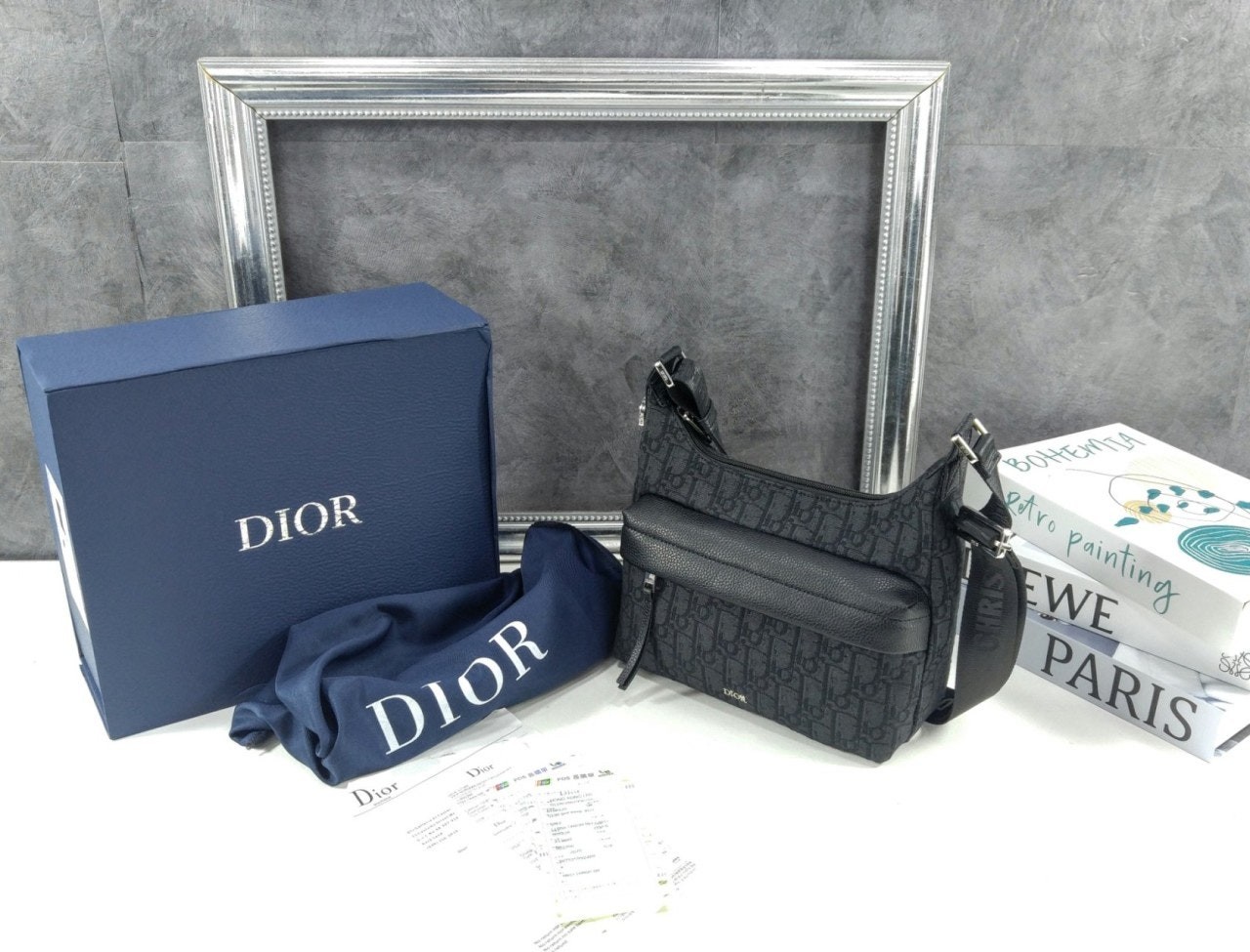 • 디* Rider Soft 스몰호보백 블랙 Oblique 자카드블랙 그레인 송아지 가죽풀박스