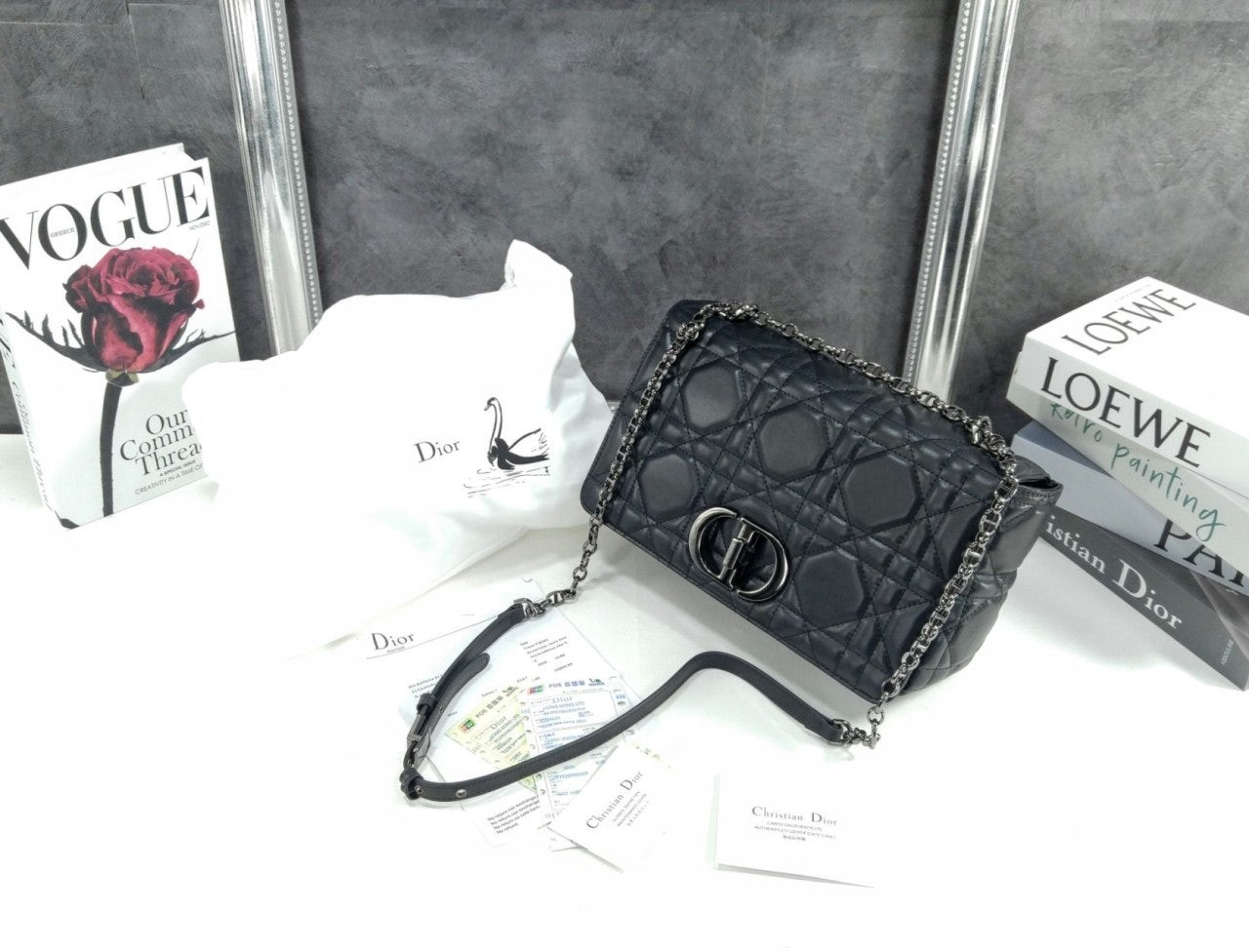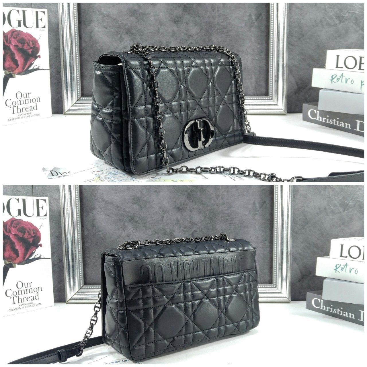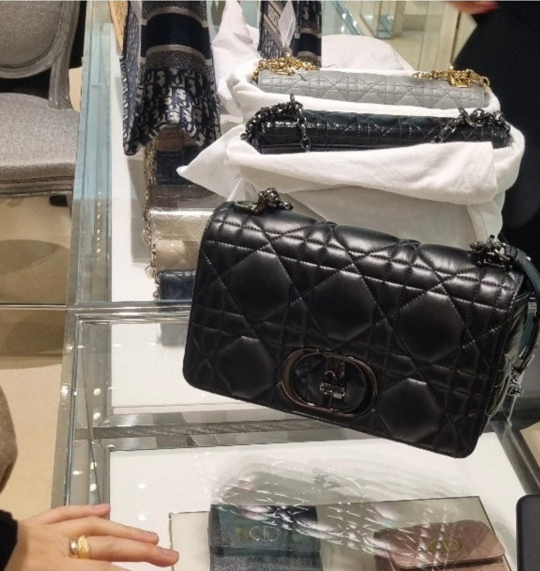 우아한 타임리스 스타일이면서 동시에 모던함이 느껴지는 Di0r Caro 백입니다. 독특한 퀼트-이펙트의 매크로까나쥬 스티칭이 돋보이는 블랙 컬러 송아지 가죽 소재로 제작되었습니다. Christ*an Di0r 향수 보틀 씰에서 영감을 얻은 플랩의 앤틱 블랙 피니시 메탈 CD 트위스트 잠금장치가 특징입니다. CD 시그니처 링크로 이루어진 탈착식 체인 숄더 스트랩을 활용해 핸드백이나 숄더백처럼 착용하기 좋으며, 디* 하우스의 다양한 와이드 자수 스트랩을 매치해 데이 룩이나 이브닝 룩을 연출할 수 있습니다.