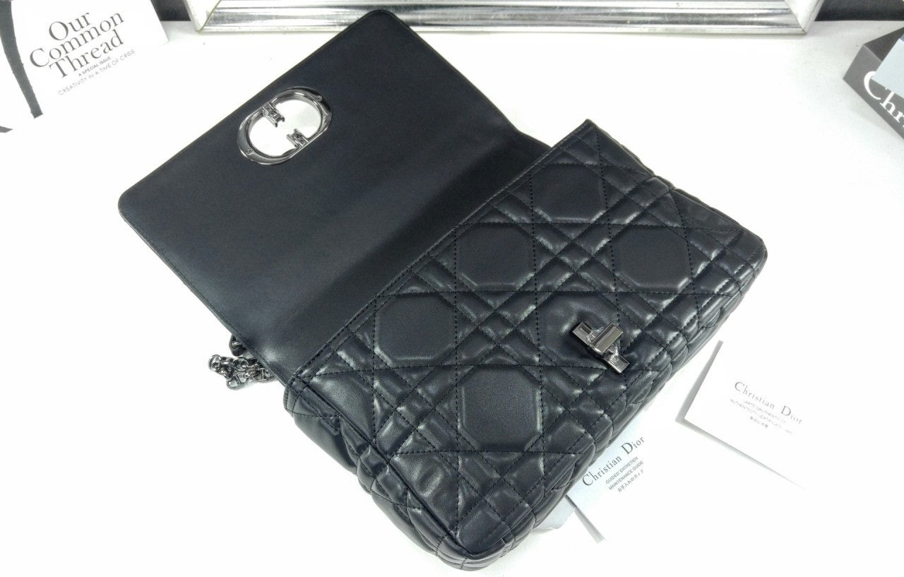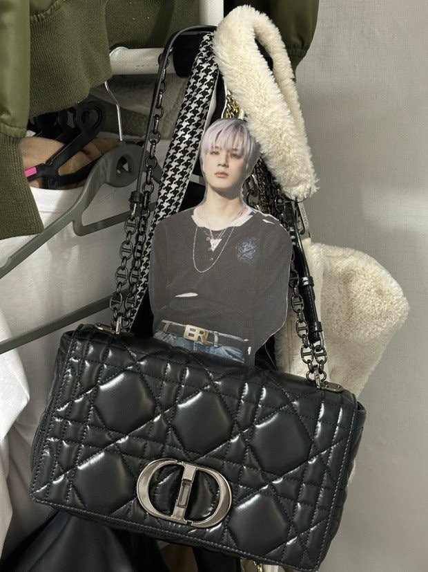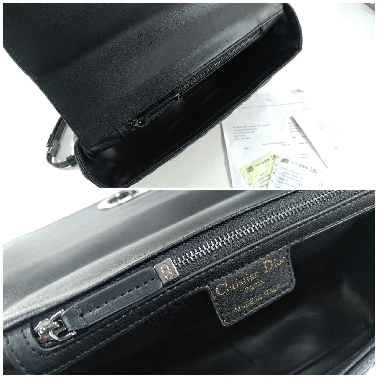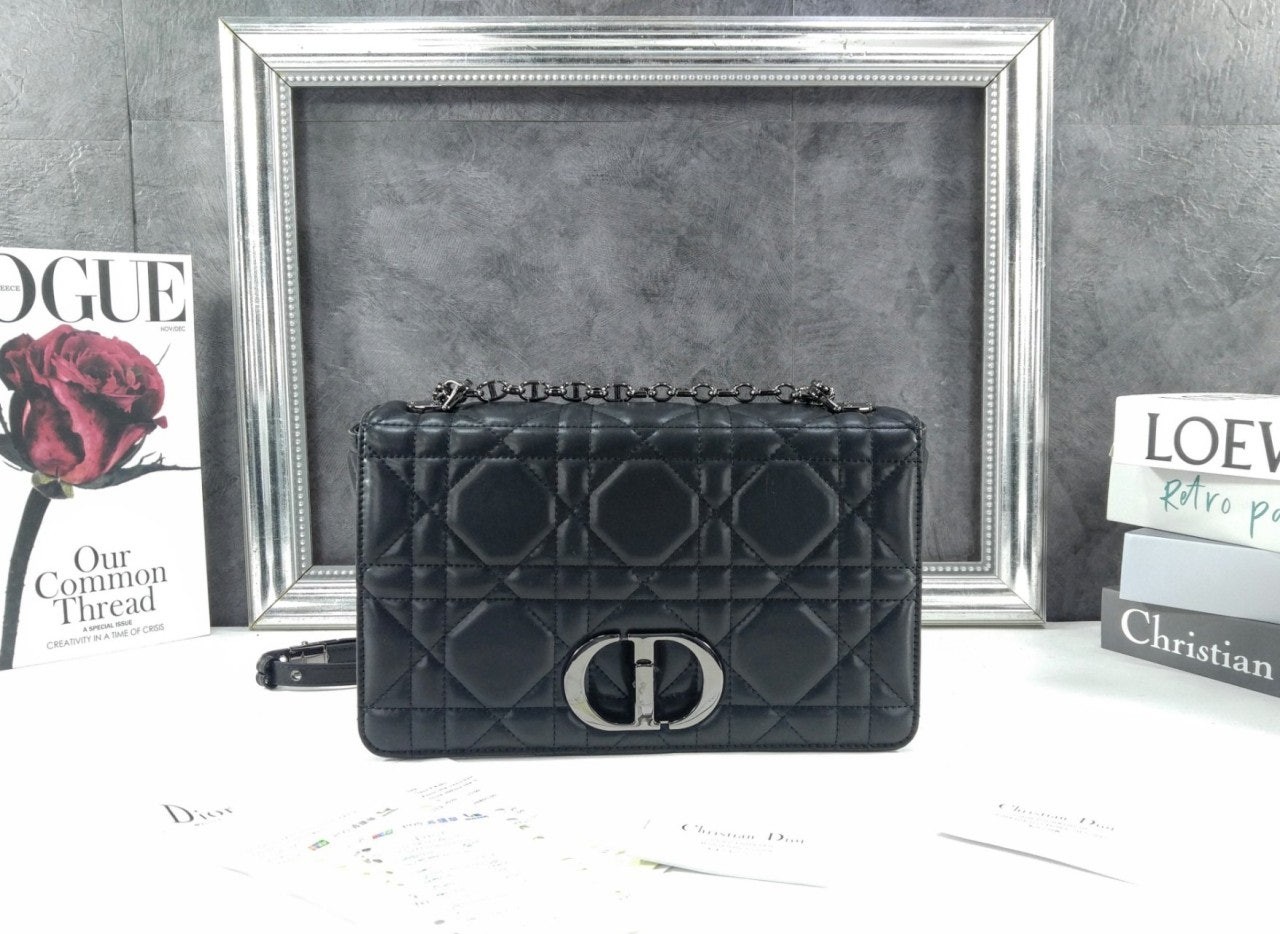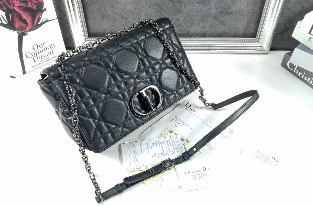 우아한 타임리스 스타일이면서 동시에 모던함이 느껴지는 Di0r Caro 백입니다. 독특한 퀼트-이펙트의 매크로까나쥬 스티칭이 돋보이는 블랙 컬러 송아지 가죽 소재로 제작되었습니다. Christ*an Di0r 향수 보틀 씰에서 영감을 얻은 플랩의 앤틱 블랙 피니시 메탈 CD 트위스트 잠금장치가 특징입니다. CD 시그니처 링크로 이루어진 탈착식 체인 숄더 스트랩을 활용해 핸드백이나 숄더백처럼 착용하기 좋으며, 디* 하우스의 다양한 와이드 자수 스트랩을 매치해 데이 룩이나 이브닝 룩을 연출할 수 있습니다.