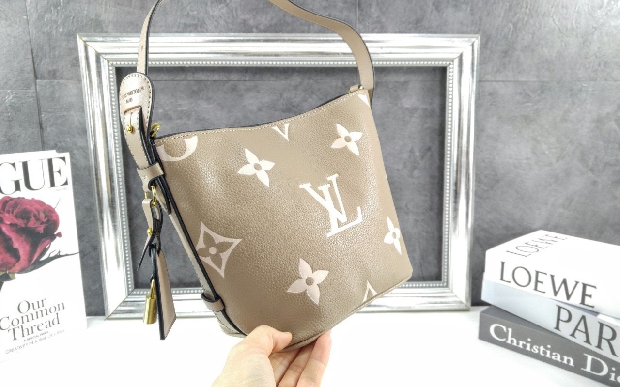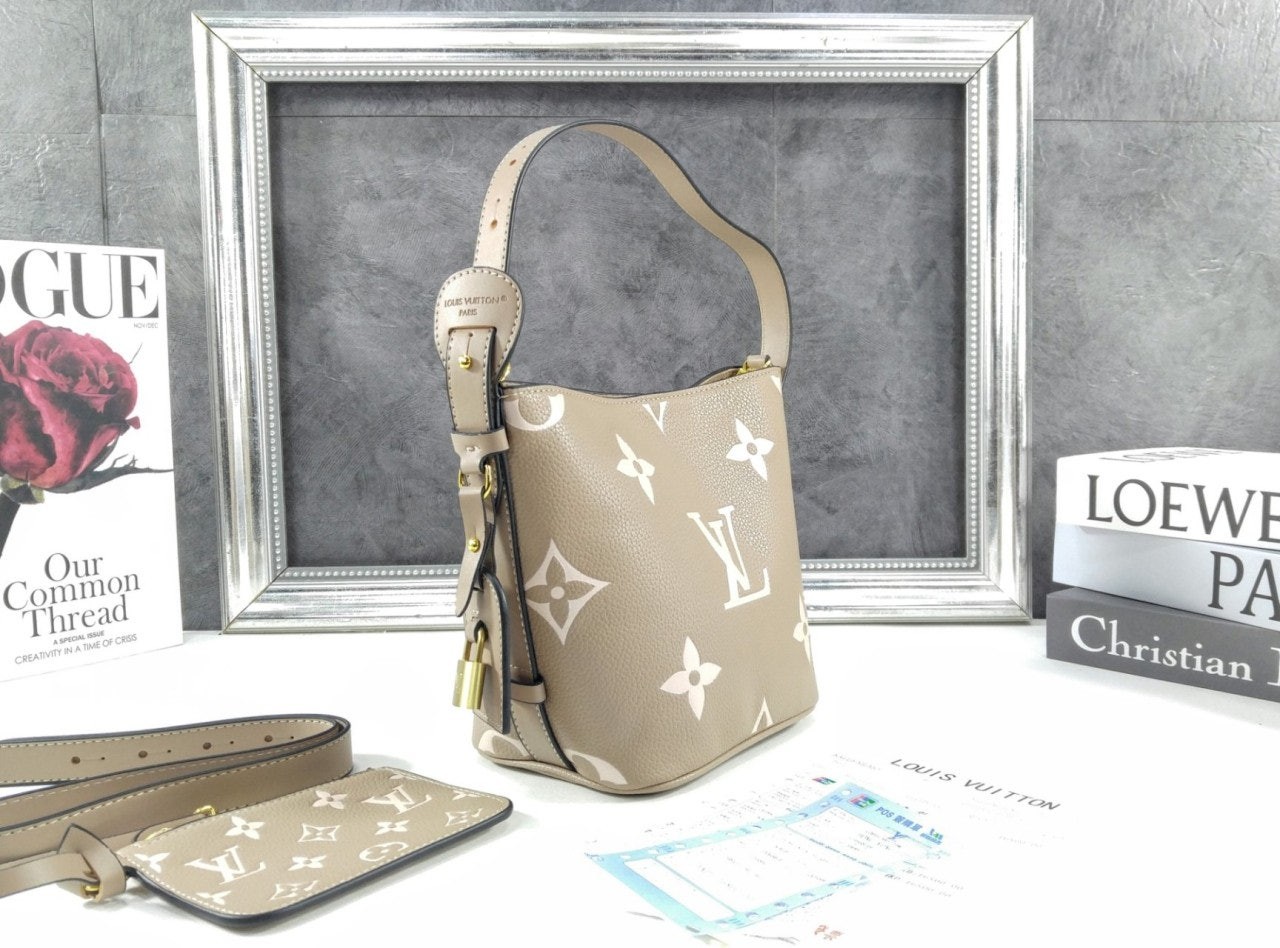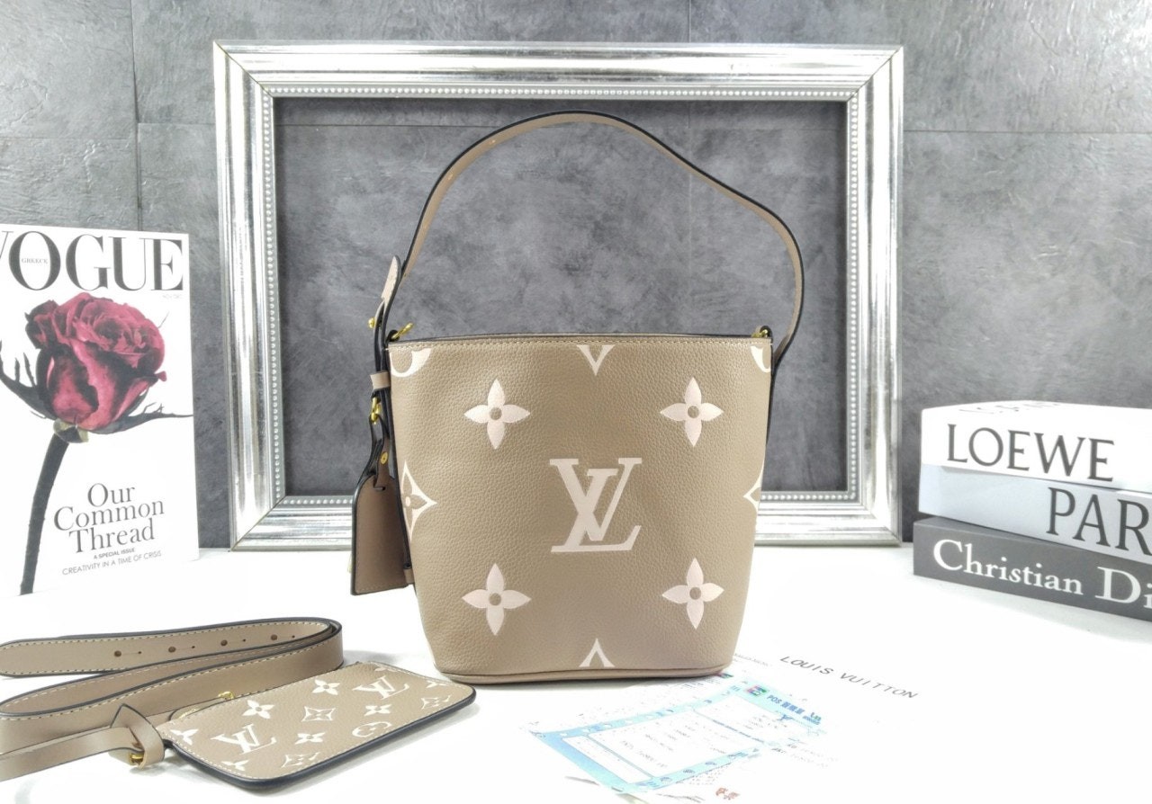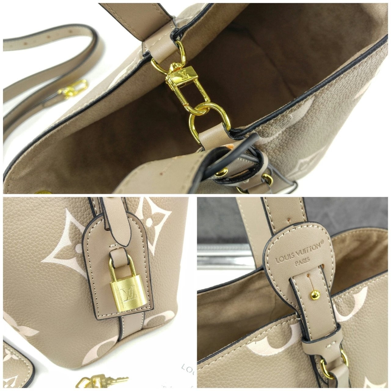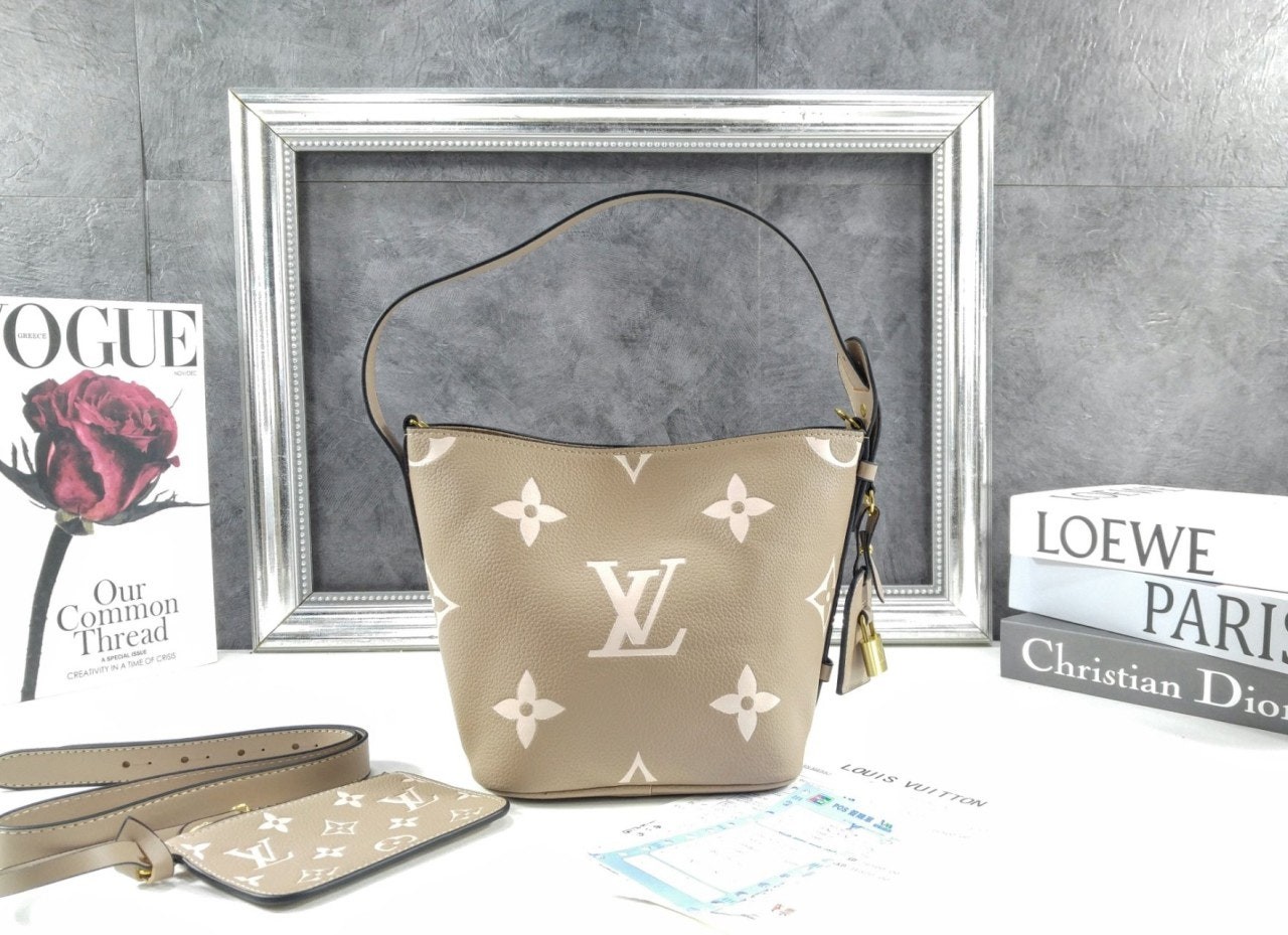 시대를 초월하는 에디션으로 선보이는 올 인 BB(All In BB). 넉넉한 수납 공간을 제공하는 우아한 디자인의 현대적이고 활용도 높은 아이템. 산뜻한 바이컬러 색조의 모노그램 앙프렝뜨 가죽 소재로 완성한 세련된 버킷 백. 네임 택, 골드 색상의 패드락 등 다양한 시그니처 디테일. 하우스의 트렁크 제조 헤리티지에 오마주를 바치는 조절형 핸들.