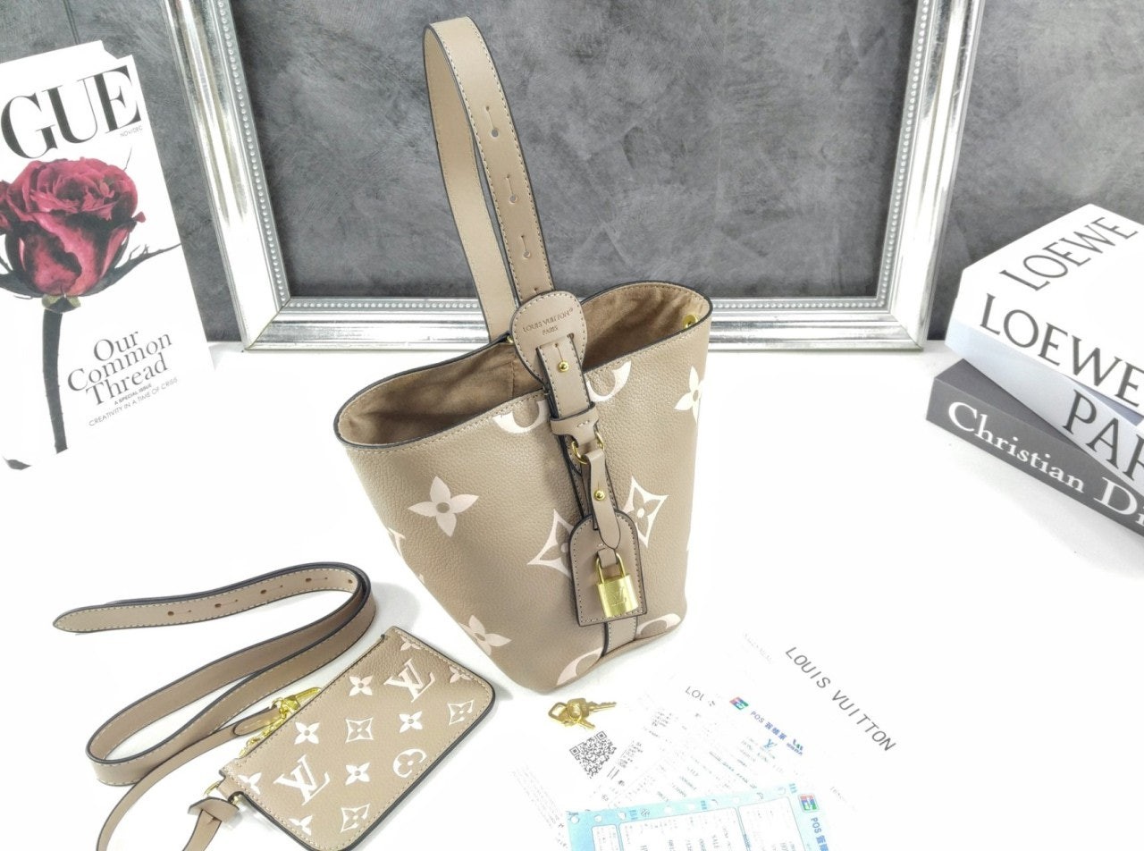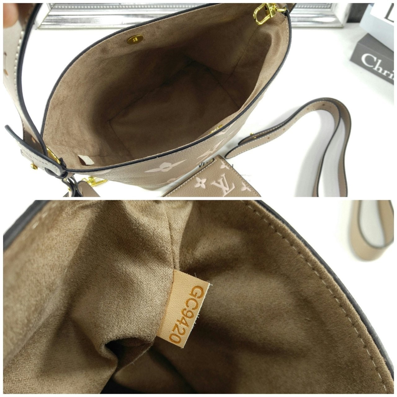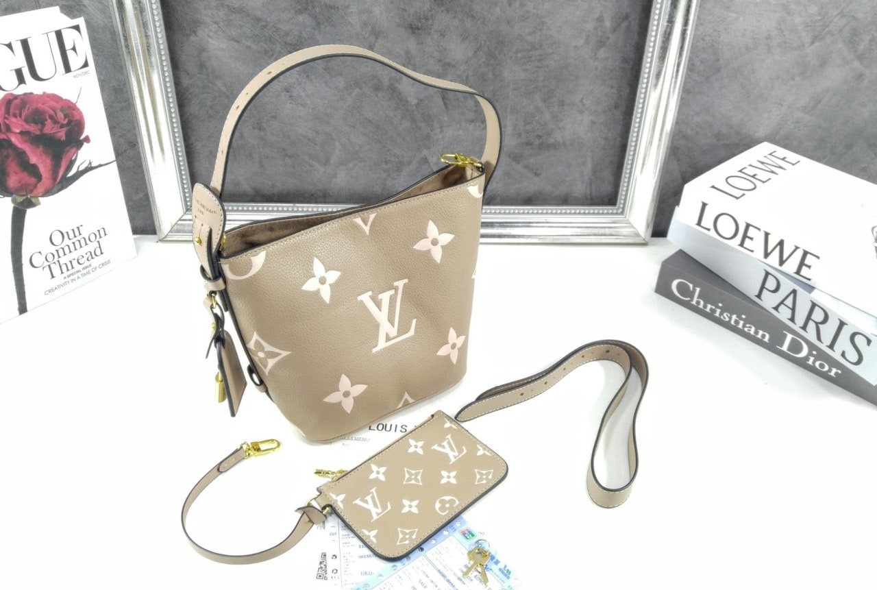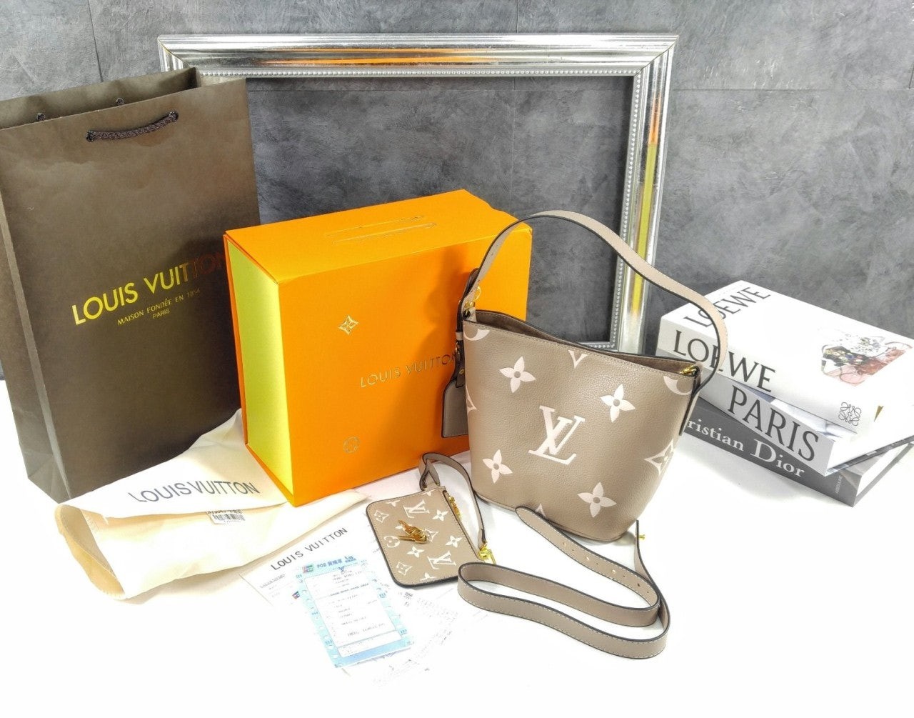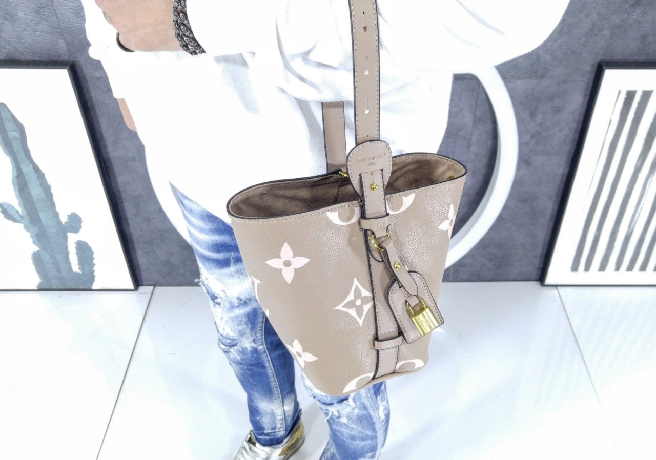 시대를 초월하는 에디션으로 선보이는 올 인 BB(All In BB). 넉넉한 수납 공간을 제공하는 우아한 디자인의 현대적이고 활용도 높은 아이템. 산뜻한 바이컬러 색조의 모노그램 앙프렝뜨 가죽 소재로 완성한 세련된 버킷 백. 네임 택, 골드 색상의 패드락 등 다양한 시그니처 디테일. 하우스의 트렁크 제조 헤리티지에 오마주를 바치는 조절형 핸들.