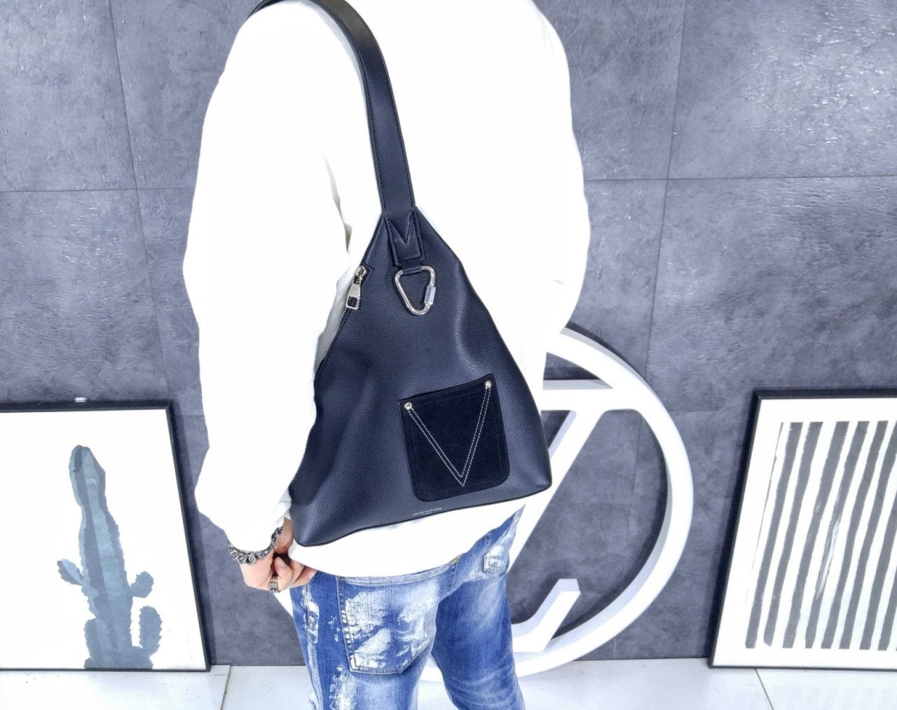 독특한 실루엣과 스타일리시한 V 더블 스티칭으로 장식한 스웨이드 소재의 앞면 포켓이 돋보이는 델타(Delta) 슬링백. 절제된 세련미를 선사하는 루* 터치 카프스킨 가죽 소재. 휴대폰, 월릿, 열쇠 등을 보관할 수 있는 지퍼형 메인 수납공간. 조절 가능한 스트랩으로 가슴 앞으로 메거나 어깨에 걸쳐 편안하게 연출할 수 있는 아이템.