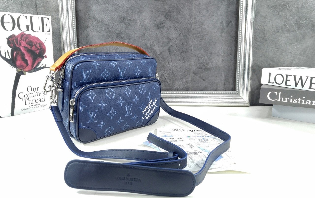 모노그램 헤리티지 캔버스 소재로 제작된 레트로풍 닐 크로스백은 메인 수납공간, 내부 플랫 포켓, 그리고 지퍼식 전면 포켓으로 구성되어 있습니다. 탈부착 가능한 가죽 탑 핸들과 탈착 가능한 숄더 스트랩은 다양한 수납공간을 제공합니다. 앞면 포켓에는 빈티지 "Marque L. Vuitton Déposée" 시그니처가 프린트되어 있습니다.