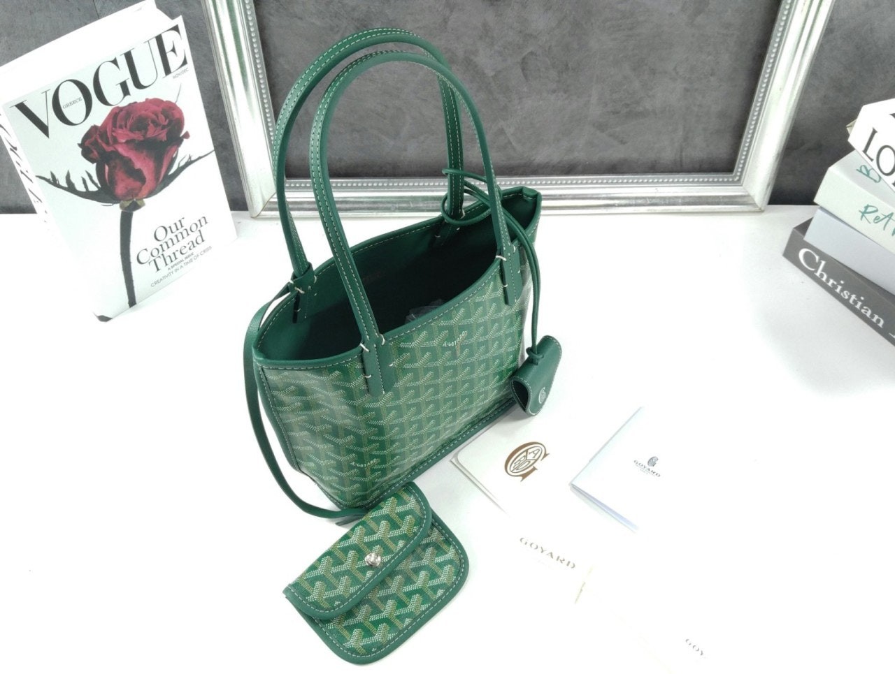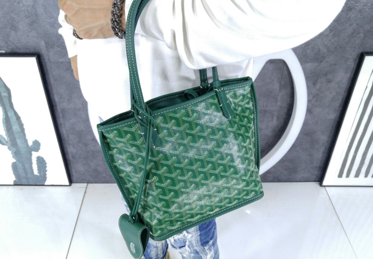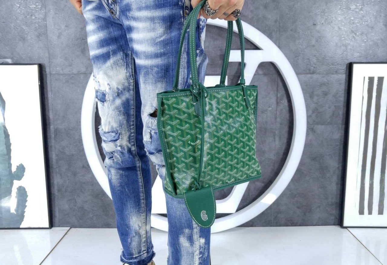 고**를 대표하는 생루이 백에서 영감을 얻어, 고야딘 캔버스 라이닝을 더한 가죽 버전의 백입니다. 두 가지 스타일로 연출할 수 있습니다. 가느다란 핸들이 있어, 손으로 잡고 편안하게 운반할 수 있도록 합니다. 앙주 미니는 미니어쳐 사이즈로 저녁 외출을 위해 사용하거나, 하루 종일 소지품을 휴대하기에도 이상적입니다.