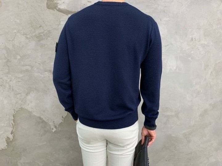 넥라인이 라운드 형태의 니트라 깔끔하고