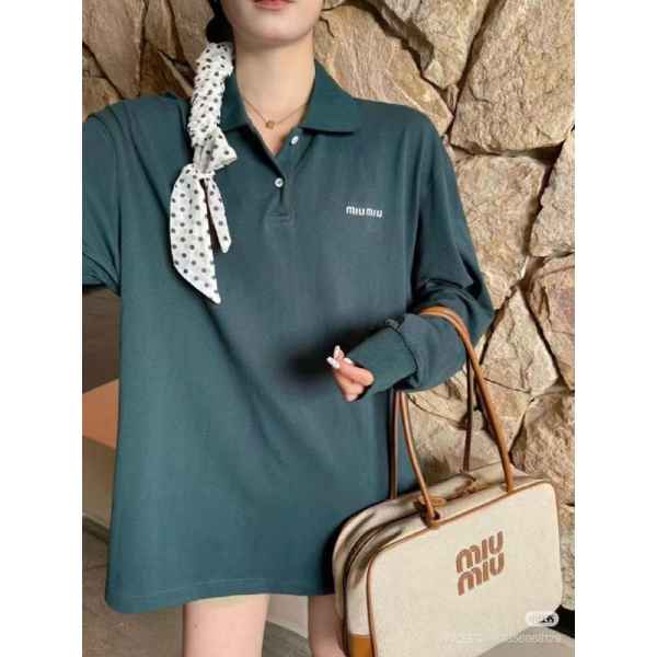 •수많은 연예인,셀럽 등 착용! Mi* Mi* 25년 신상 레터링 자수 로고 칼라 폴로 셔츠는 Mi* Mi*의 디자인 철학과 스타일이 성별 경계의 모호한 처리를 보여주며, 남성을 포함한 더 넓은 고객층을 탐색하기 시작했음을 의미합니다. 이 칼라 폴로 셔츠는 남녀 모델이 함께 등장하는 모범적인 사례로, 등장하는 순간부터 짙은 레트로한 분위기를 풍깁니다.