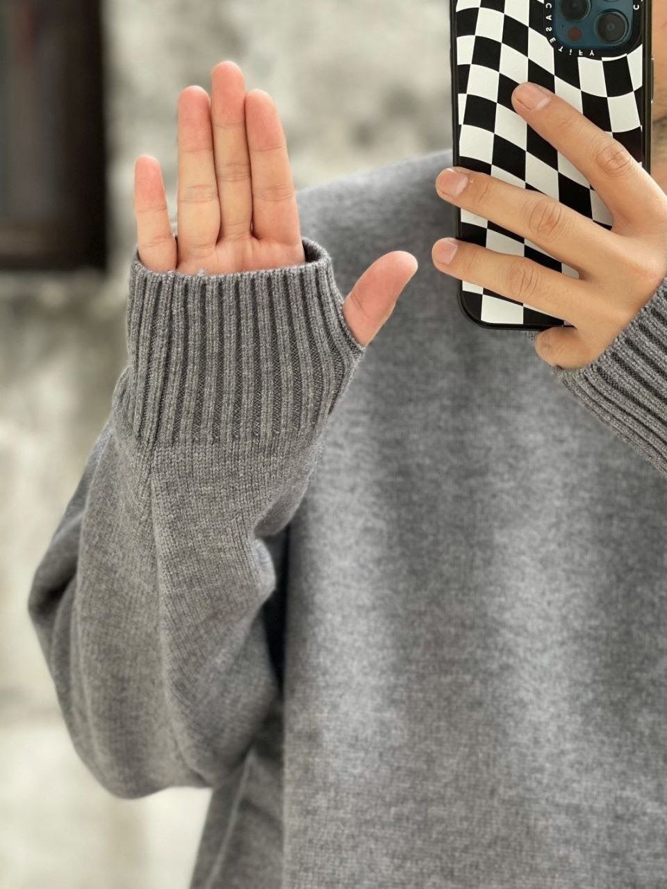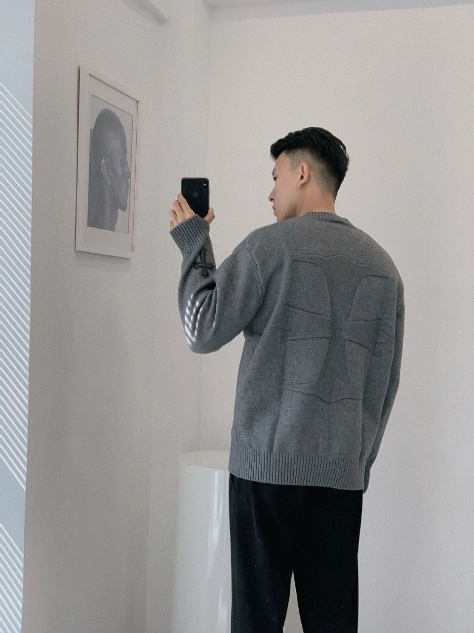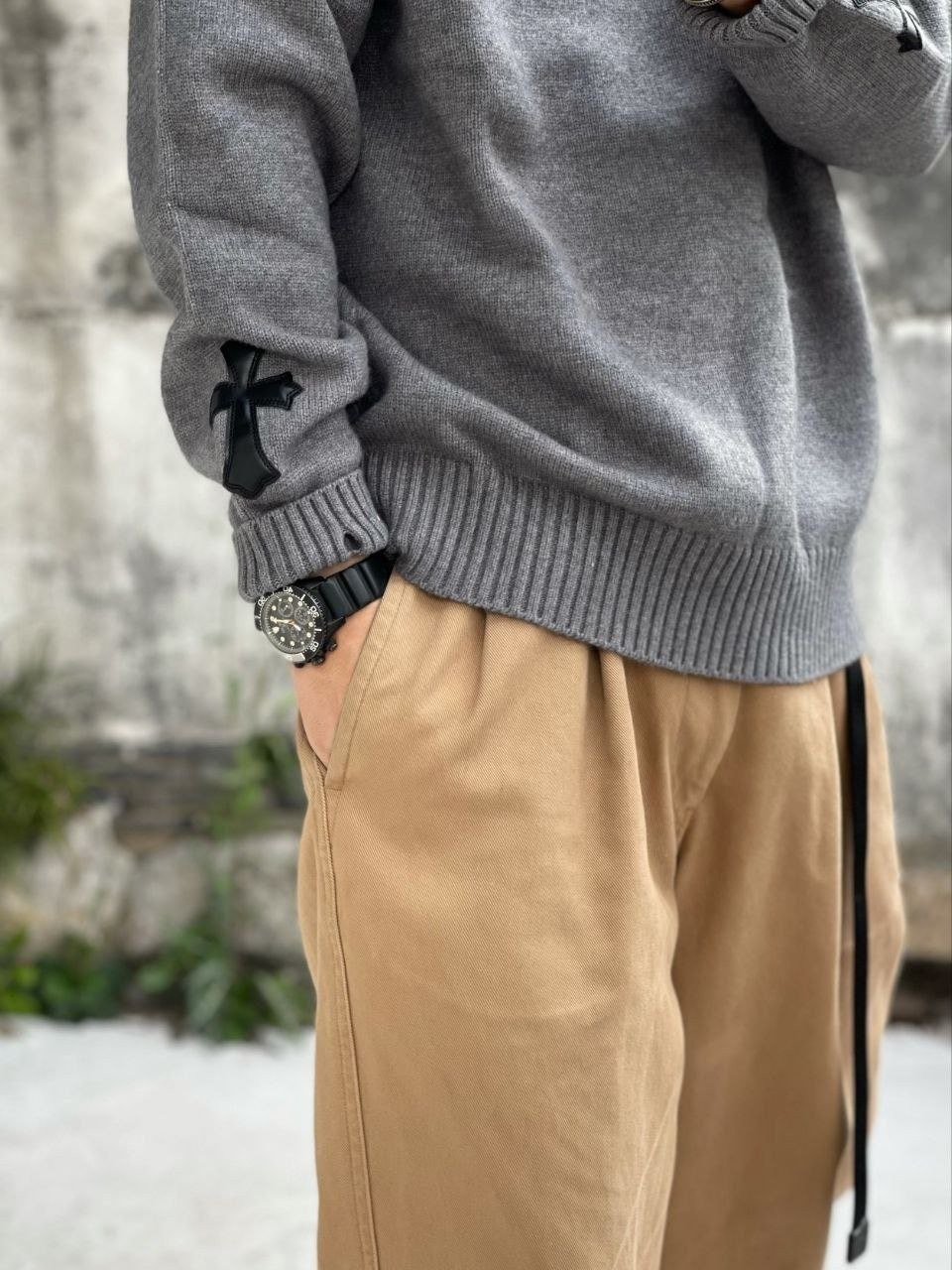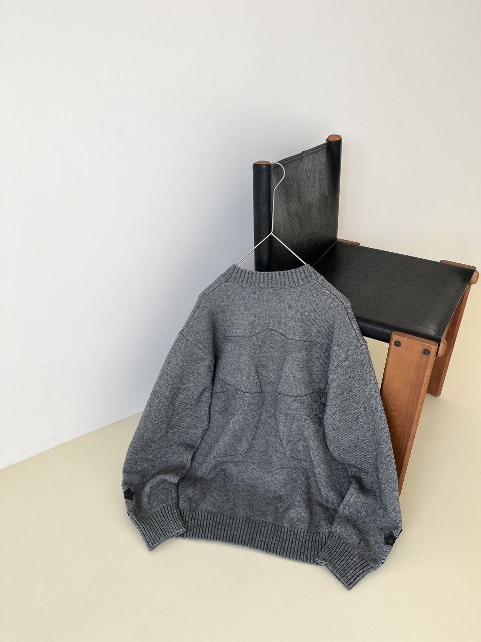 •Chrome Hear** 크* FW 가을·겨울 컬렉션의 십자가 가죽 라벨 입체 인서트 자수 니트 입니다. 회색 100% 양모(울)를 주문 염색·정교하게 편직해 만든 제품입니다. 초정밀 수입 밀편 기술로 촘촘하게 짜여 원단 자체의 두께와 중량감이 충분하며, 원사와 공정 모두 매우 높은 수준으로 완성되어 촉감이 조밀하고 부드러워 피부에 닿는 감이 좋습니다. 통기성과 보온성도 뛰어나 가을·겨울 단품으로 입거나 이너로 활용하기에 매우 쾌적한 착용감을 제공합니다.
