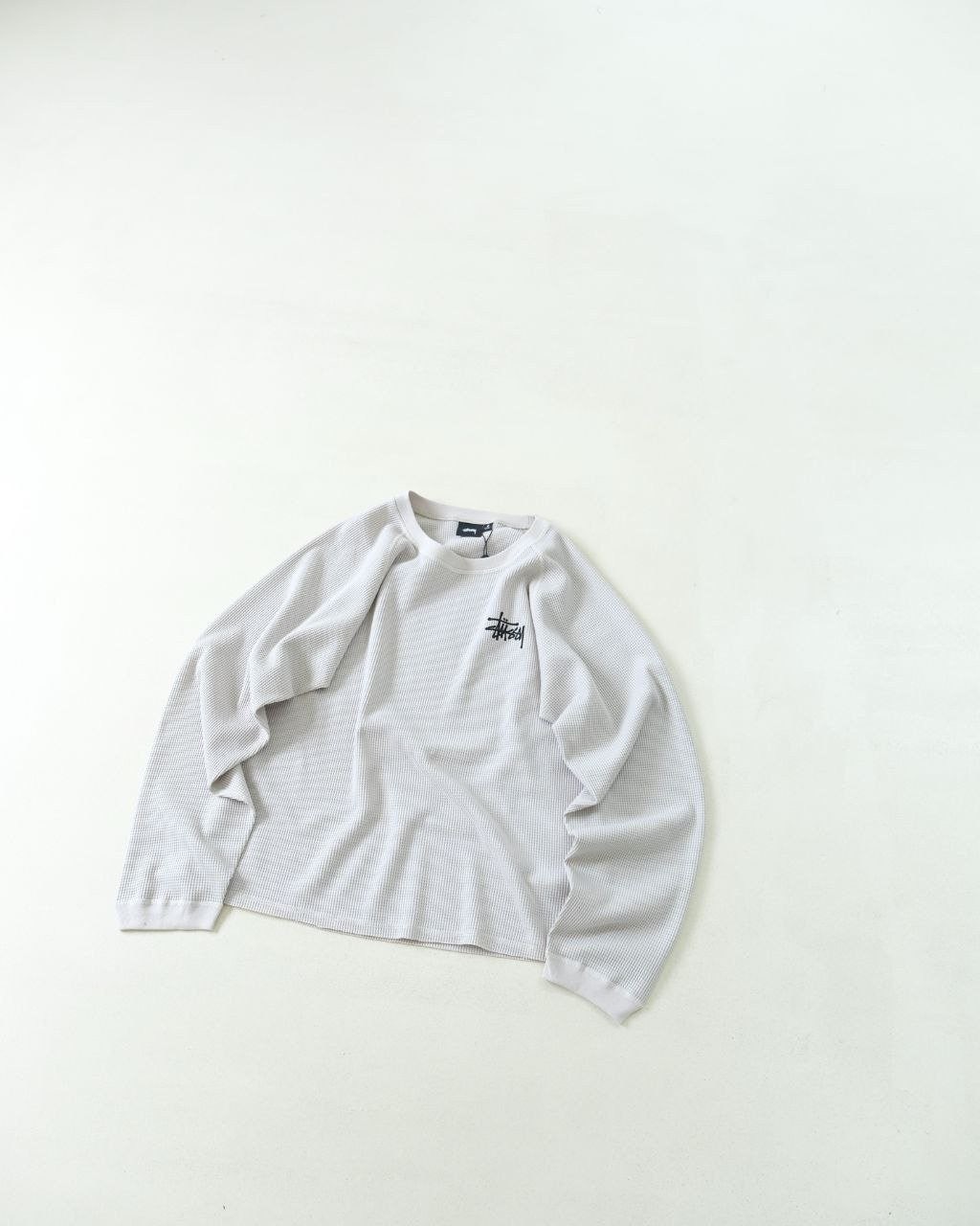 •Stus** 가을 컬렉션 로고 래글런 슬리브 와플 롱슬리브 티셔츠 (유니섹스) 오리지널을 분해 분석해 개발했으며, 작은 로고 패치·넥 라벨·워싱·행택을 1:1로 커스텀 재현했습니다. 와플 원단을 사용해 일정한 신축성과 도톰함이 있으며, 통기성과 드레이프가 좋아 피부에 부드럽고 포근하게 닿습니다. 전체 실루엣은 레귤러핏에 가깝게 약간 넉넉한 핏이며, 래글런 소매 설계로 체형 보정과 수용성이 좋아 다양한 체형에 잘 어울립니다. 로고 프린트는 정밀 공법으로 원단과 일체감 있게 표현되었고, 살짝 빈티지 워싱된 듯한 효과로 자연스럽고 레트로한 무드를 연출합니다.