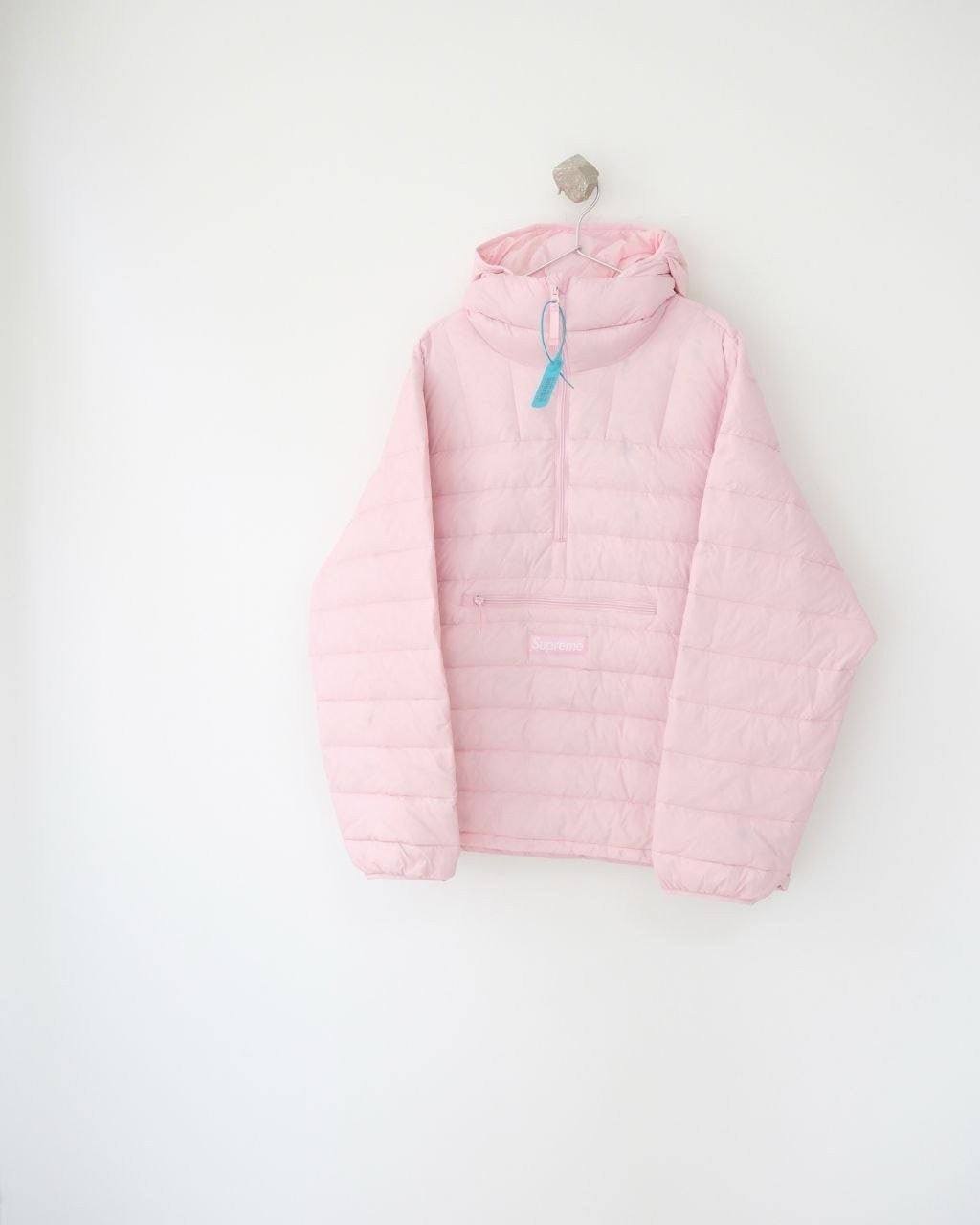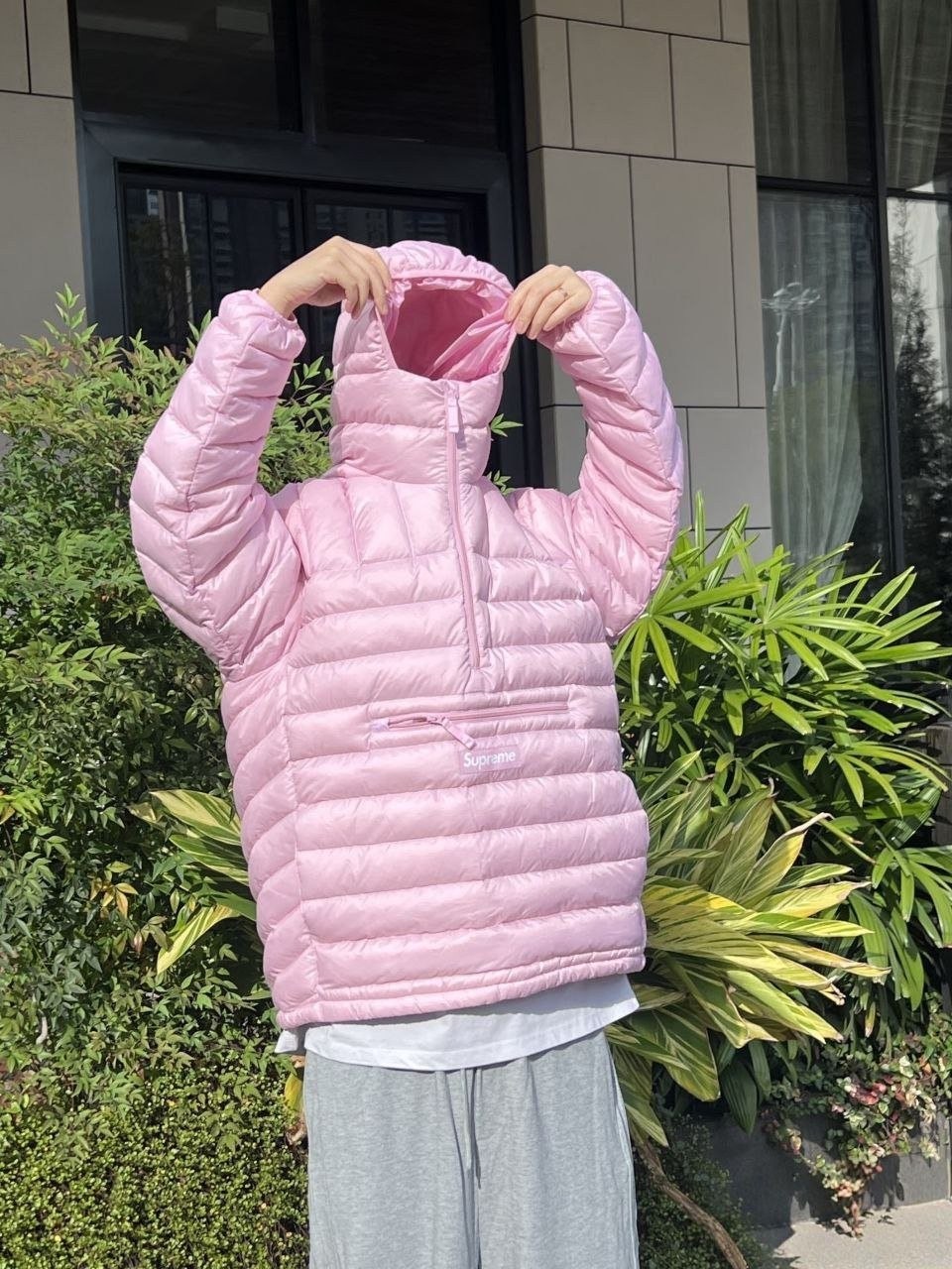 •Supre** FW WEEK6 마이크로 다운 하프 지퍼 후드 풀오버(짜임 로고 라벨 장착) 반지퍼 형태의 립(퀼팅) 다운 재킷, 남녀 공용입니다. 충전재는 90% 화이트 덕다운을 사용했고, 모든 디테일은 원본과 1:1로 재현되었습니다. 원단·지퍼·색상 등 부자재는 맞춤 제작되어 매장 진열용 오리지널과 구분 없이 착용하실 수 있는 수준입니다. 색상은 블랙·핑크·그레이이며 전체적으로 넉넉한 루즈핏입니다.